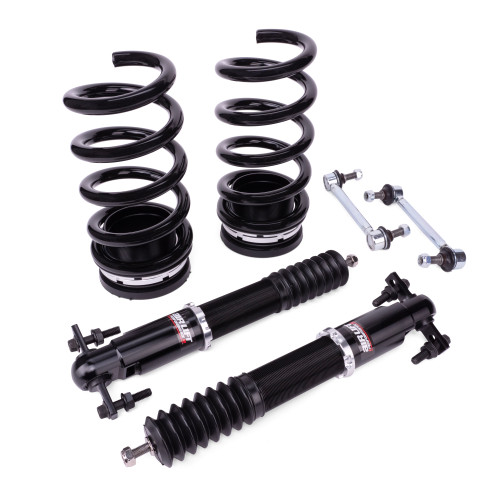 Kit Includes: Kit Includes: Complete Coilover kit with set of (4) front and rear dampers, (4) coil springs, (2) adjustable rear coil spring perches, (2) spanner wrenches, (2) sway bar end links, (4) damping adjustment knobs and (4) damping knob grommets.