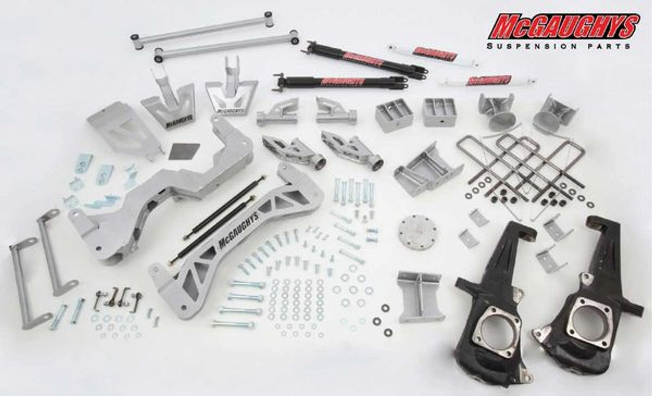 Kit Includes: (2) Spindles, (2) Lift Blocks w/ U-bolts & Hardware, (1) Front Crossmember, (1) Rear Crossmember, (1) Skid Plate, (2) Sway Bar End Links, (2) Compression Struts, (2) Lower A-frame Support Rods, (2) Torsion Bar Drops, (1) Differential Drop, (1) CV Axle Spacer, (1) Weld-in Filler Plate, (4) Front & Rear Bump Stops, (1) Brake Cable Extenders, (1) Rear Brake Bracket Extenders, (2) Rear Compression Strut Retainer Brackets, (2) Front Brake Line Bracket Extenders, (2) Upper Shock Mounts w/ Hardware, (2) Front Shocks & (2) Rear Shocks