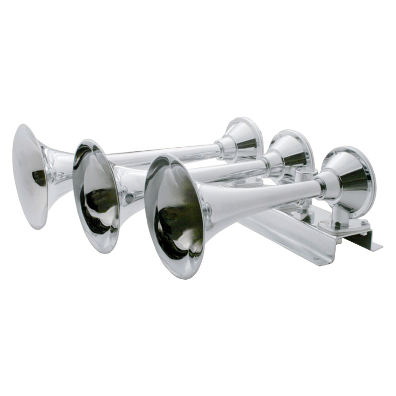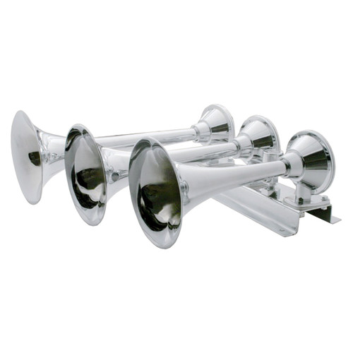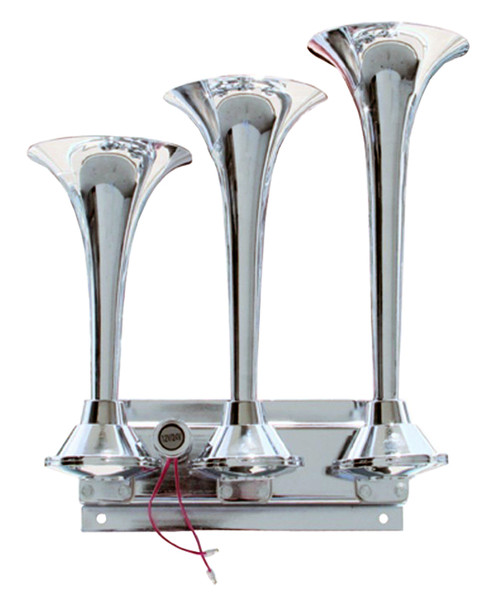 3 TRUMPET CHROME TRAIN HORN- LONG TRUMPET ON THE RIGHT HAND SIDE