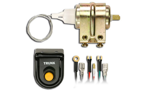 THIS KIT IS FOR VEHICLES WITHOUT FACTORY EQUIPPED ELECTRIC TRUNK RELEASE. USE THIS KIT TO ADD POWER TRUNK RELEASE TO ANY OF ALARMS OR 12-CHANNEL RECEIVER SYSTEMS. ALSO INCLUDES DASH MOUNTED SWITCH FOR TRADITIONAL POWER TRUNK RELEASE FROM WITHIN THE VEHICLE. MOTOR FEATURES 11 LB PULL.