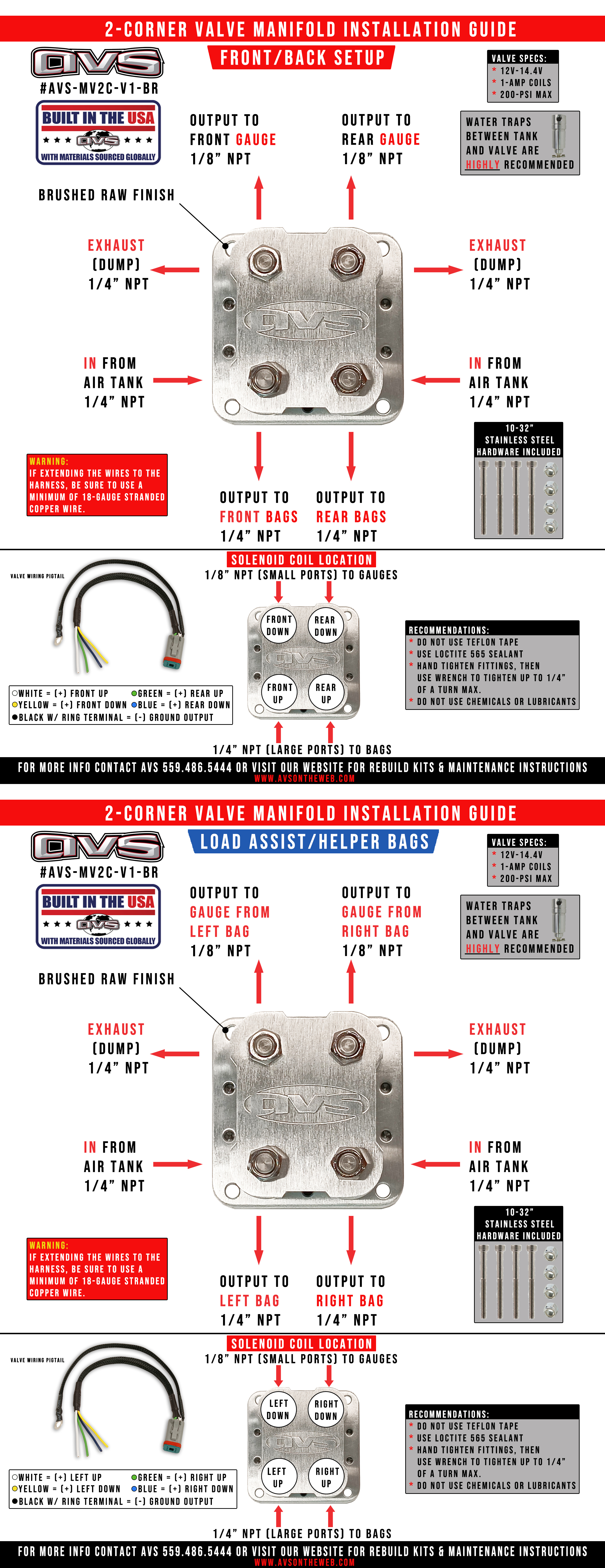 1.1 AVS 2-CORNER MANIFOLD - FRONT/BACK PLUMBING #AVS-MV2C-V1-##