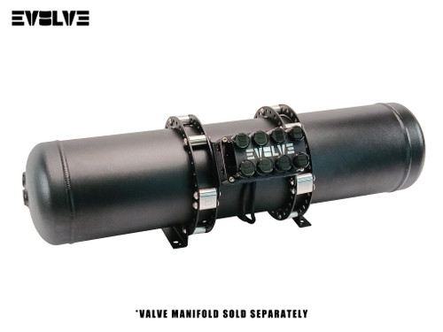 Looking for a clean looking mounting system to save you hours of measuring, marking and save you from drilling a kazillion holes in your ride?  How about a system that can house a tank, valve, and a compressor or two - that will only require four, yes, "4" holes to mount your entire air management system?  The EVOLVE Tank Bracket System can be used simply as an upgrade to give your tank that extra touch.  You can also add upgrades to bolt-on a set of compressors and even add a bracket to mount your manifold valve.  You also have the option of  positioning the mounting feet on the back of the clamps, or on top, if you want to hang the kit from the rear package tray in a trunk setup.