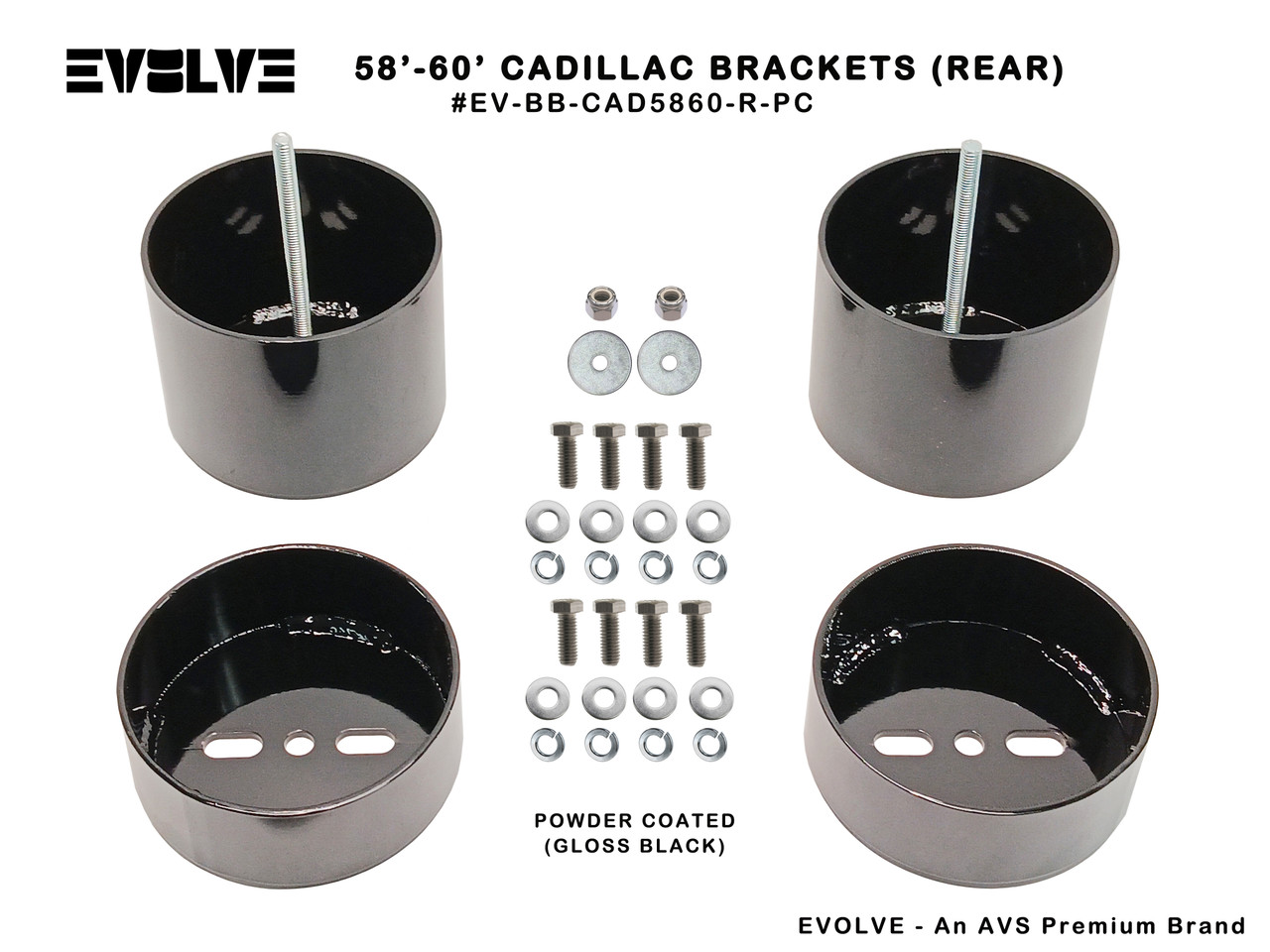 58'-60' Cadillac Brackets (REAR). Includes mounting hardware. ***Powdercoated Gloss Black***