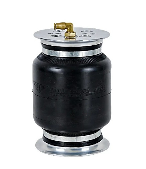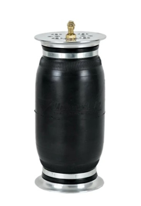 Single bellow construction greatly increases the stability of the air spring allowing for increased angle and load applications without the banana center kick out.